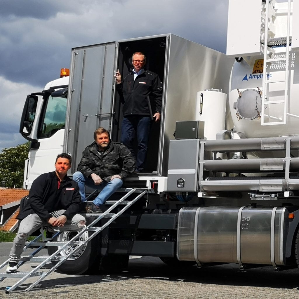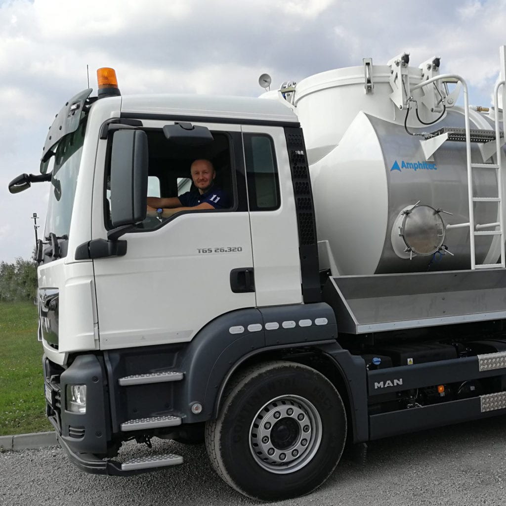 “Our Amphitec equipment is quite often used for cleaning work during shutdowns on power plants. During production stops, incinerators are temporarily shut down and cleaned from top to bottom in a short time. The residue is drawn into the tank by long distance hoses. Thanks to a unique adjustment, we are able to unload the tank without interrupting the cleaning process. This allows us to perform this work quickly and efficiently. ”