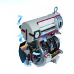 De Amphitec® roots blower 11000 pomp voorziet de machine van luchtstroom voor zuig- en blaaswerkzaamheden. Dit type pomp is door haar brede scala van toegestane pompsnelheden uniek onder de diverse pomp modellen. Een laag toerental voor blaaswerkzaamheden en hoger haalbare toerentallen voor zuigwerkzaamheden. De pomp levert een theoretische maximale luchtstroom van 11000 m3/u resulterend in een hoge pickup snelheid om deeltjes mee te nemen in de luchtstroom tijdens zuigen. De eigenschap van de Amphitec® roots blower 11000 om een diep vacuum te halen (96% onderdruk), maakt optimaal pneumatisch transport door de slang mogelijk. In het bijzonder is dit noodzakelijk voor het efficiënt zuigen van zware producten en sludges. Verblazen van product wordt gedaan met een maximale overdruk van 1,0 bar en een luchtstroom van 2500 m3/u.
