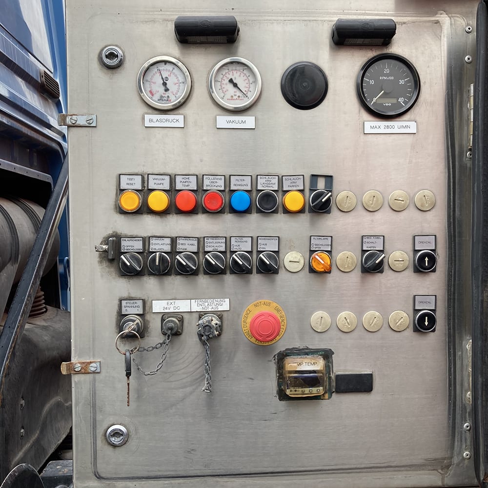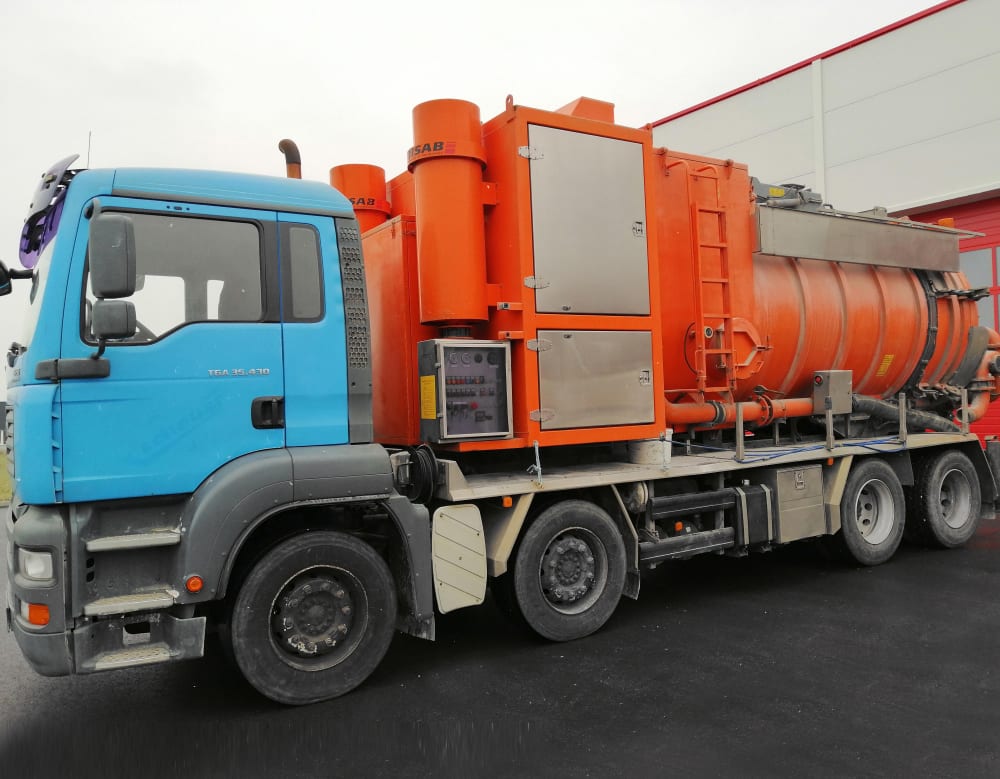 This pressure-vacuum installation is capable of vacuuming dry products and liquids and blowing of free flowing dry materials.